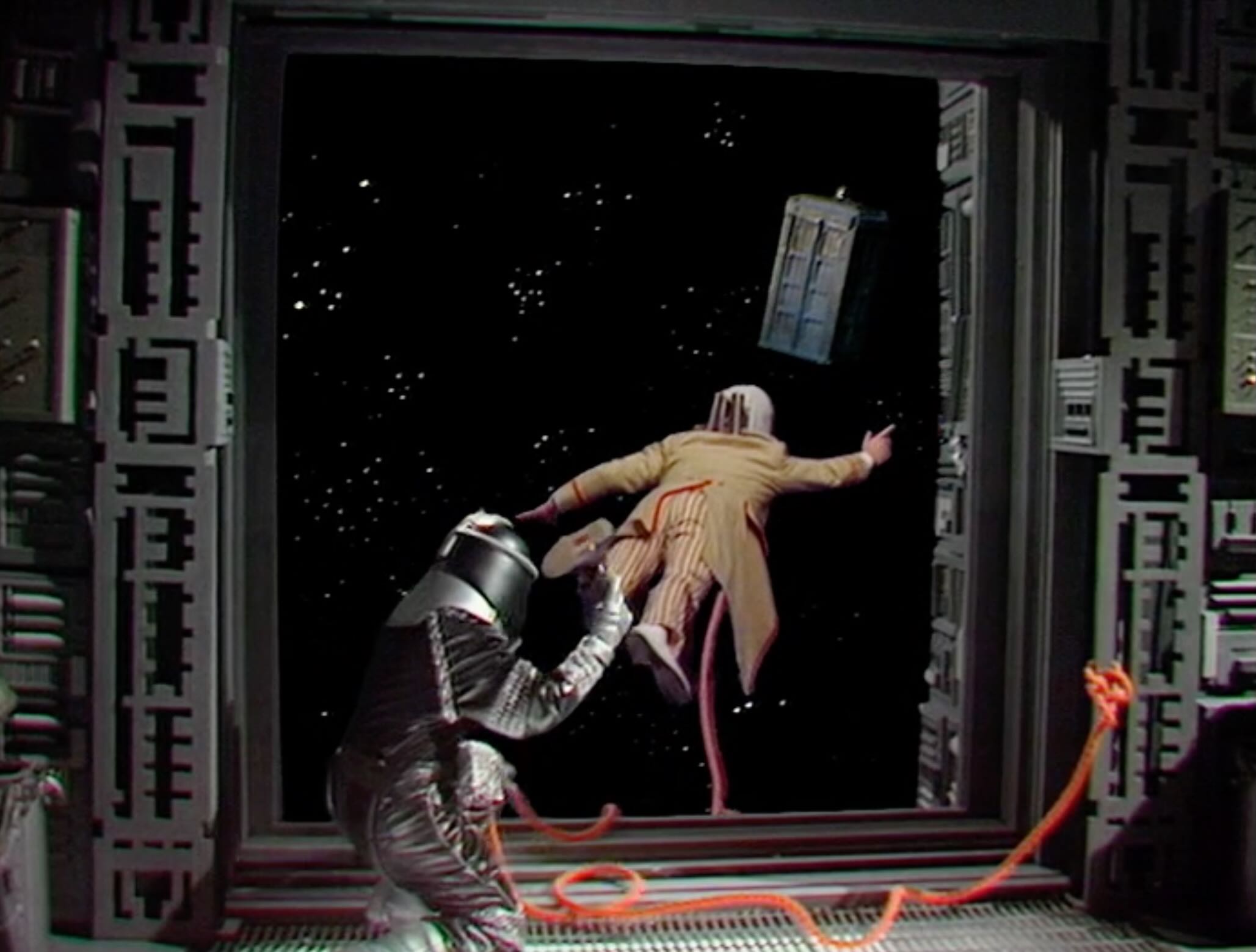 It’s ludicrous to think that she thinks she can do this, and isn’t almost certainly about to get herself completely lost in the universe forever. Not to mention the likelihood that she is almost certainly about to abandon her traveling companions in the process. From a story and character perspective, it’s absurd, and doesn’t really serve any purpose but to get the TARDIS away from the ship so the Doctor has to do his dramatic “space walk” stunt.